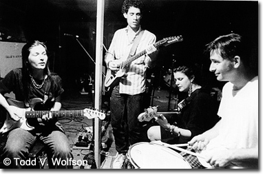 The Reivers’ first incarnation, Zeitgeist, originated in Austin, TX with a lineup that included: John Croslin– main songwriter, vocalist, guitars; Kim Longacre– vocals, guitars; Kelly Bell– bass; and Joey Shuffield– drums. Shuffield left the band during rehearsals and was replaced by Garrett Williams. Kim says “I met John when he was in The Make. He was in theatre classes with my sis, then he dated our roomie, and then my beau managed his band. Then I borrowed an amp from him when his girlfriend and I started a band called Coup de Bop…and then…the rest is history!” By the time their first self-titled E.P. was released on db Records in 1984, Cindy Toth had replaced Bell as bass player [see Kelly Bell’s reminiscence about those times in the 2008 Fan Stories section of this site]. Releasing the full-length album Translate Slowly the next year, they began to build a sizeable audience. In mid-1987 they were forced to change their name by a new age band which claimed the copyright. Choosing the name “The Reivers” (pronounced Reever, meaning Thieves or Raiders- from the Scottish “Reiffar”) from the title of a William Faulkner novel, they continued recording. Translate Slowly was later reissued with the new name on CD with additional tracks.