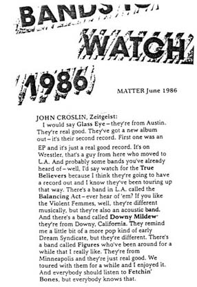 John Croslin’s Picks, Matter, June 1986.