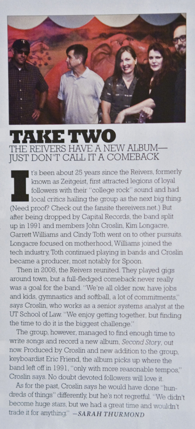 Take Two: The Reivers Have a New Album – Just Don’t Call it a Comeback. Sarah Thurmond. Austin Monthly, March 2013.