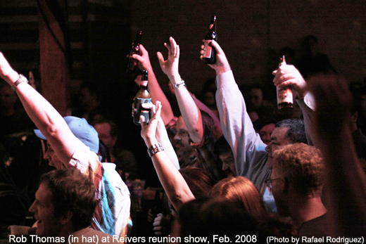 Rob Thomas is a long-time Reivers fan and was in three Austin bands (Public Bulletin, Hey Zeus, and Black Irish) in the 1980’s and 1990’s, all of which had albums produced by John Croslin. Thomas became a successful writer of young adult novels before moving to California and creating critically acclaimed television shows such as “Cupid“, “Veronica Mars” and co-creating “Party Down“. He wrote the liner notes for the reissue of The Reivers’ “Saturday” album and has recently become an Austin resident again (so he could see Reivers shows more easily?)